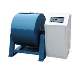 2、將試驗的碎石料和鋼球裝入筒內,密封蓋好,擰緊螺釘,開動儀器轉動500轉或1000轉后自動停止。此時出料口在中上位置,便于打開密封蓋,打開蓋后,按點動鍵,使出料口轉向下方,松開按鍵試筒停止,取出試件。